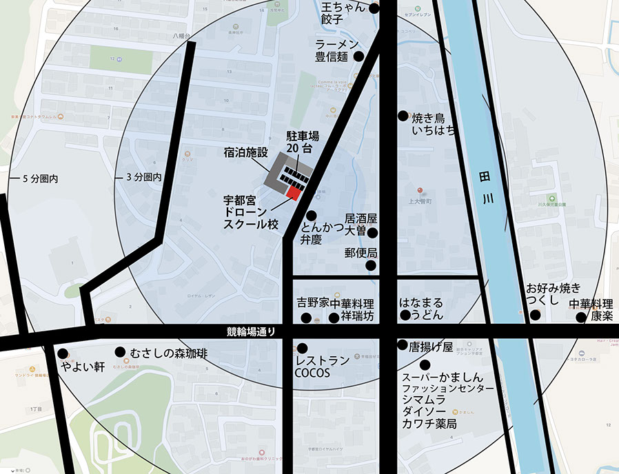 ドローン教室の敷地内に3階建て宿泊施設があります。(全4部屋)